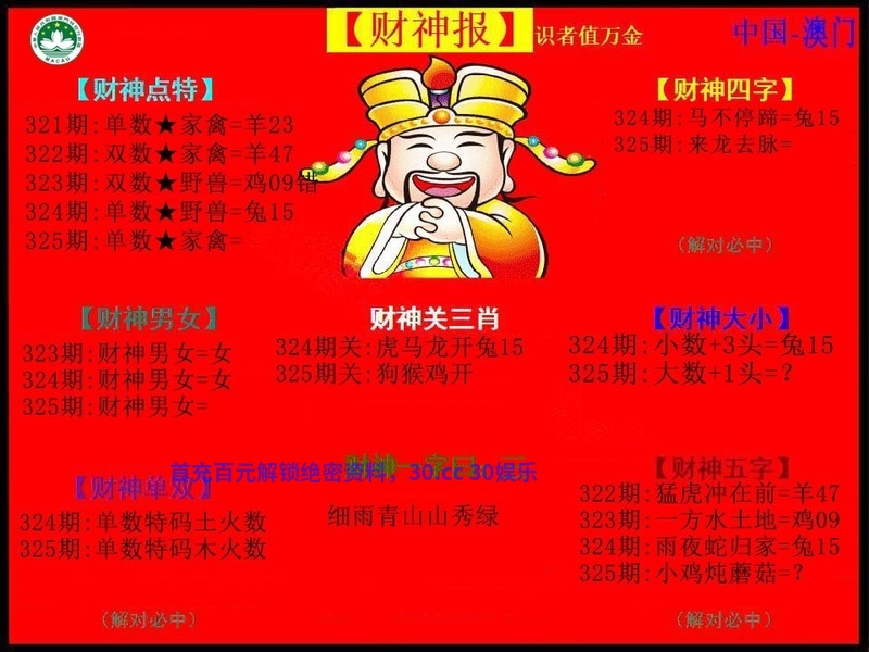 | 324期 | 猪 | 4尾 | 0头 | 开兔15 |